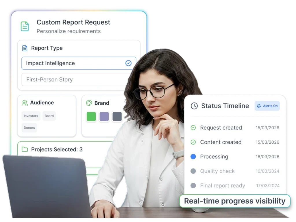 Our platform enables you to convey a narrative of progress and accountability that goes beyond data. To find out how our platform can streamline impact reporting and enhance your sustainability narrative, get in touch with our Impact Catalyst right now.