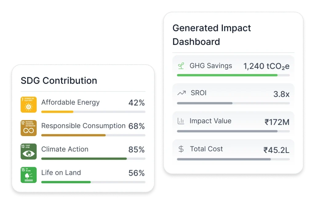 In just a few minutes, our platform converts survey responses into impact reports that are compliant. By producing logical, data-supported stories that are in line with your selected frameworks, it minimises manual labour and guarantees accuracy throughout.