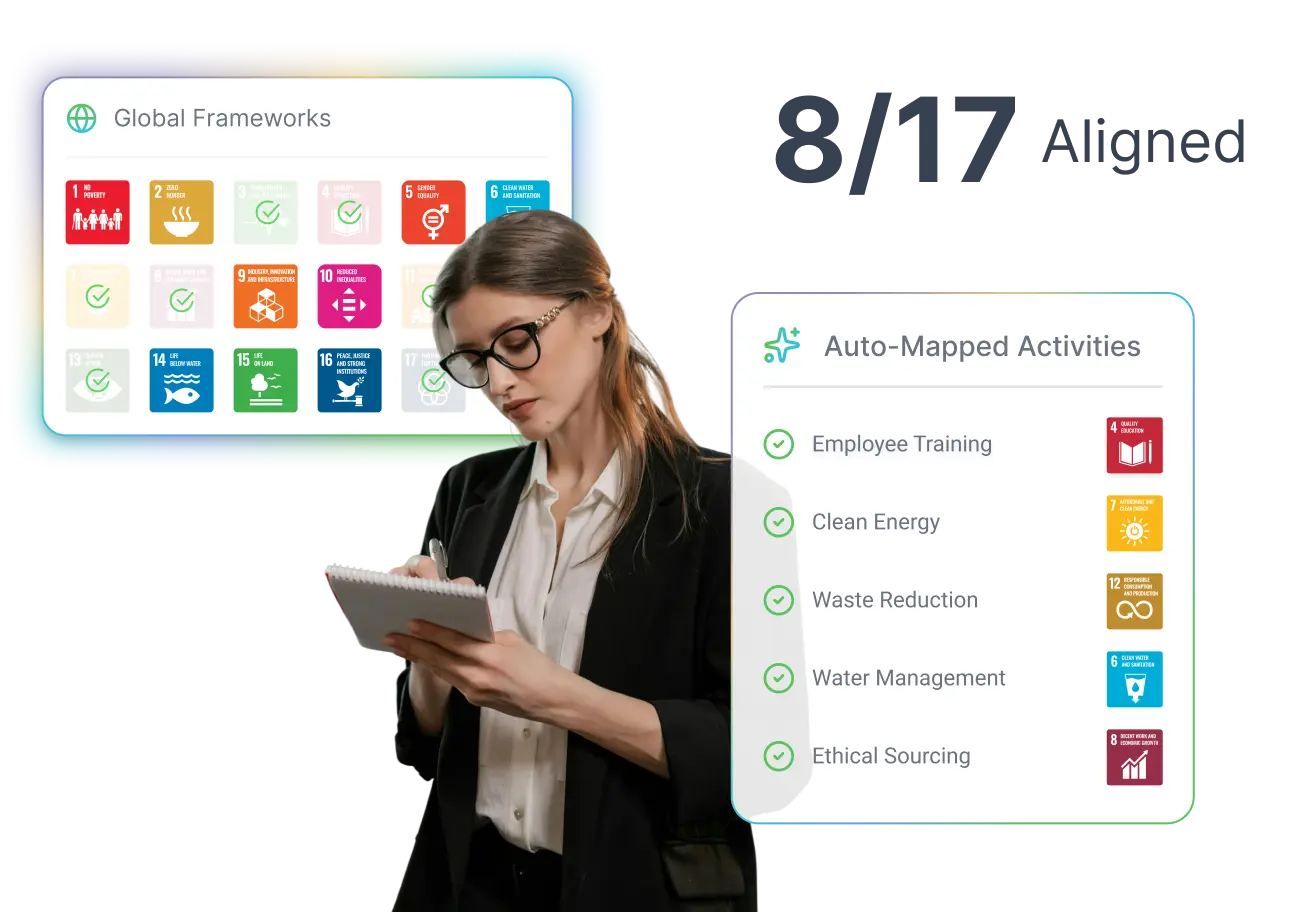 With our AI-first platform you can generate ESG reports in minutes and validate them using cross-framework mapping for consistent, credible updates.
