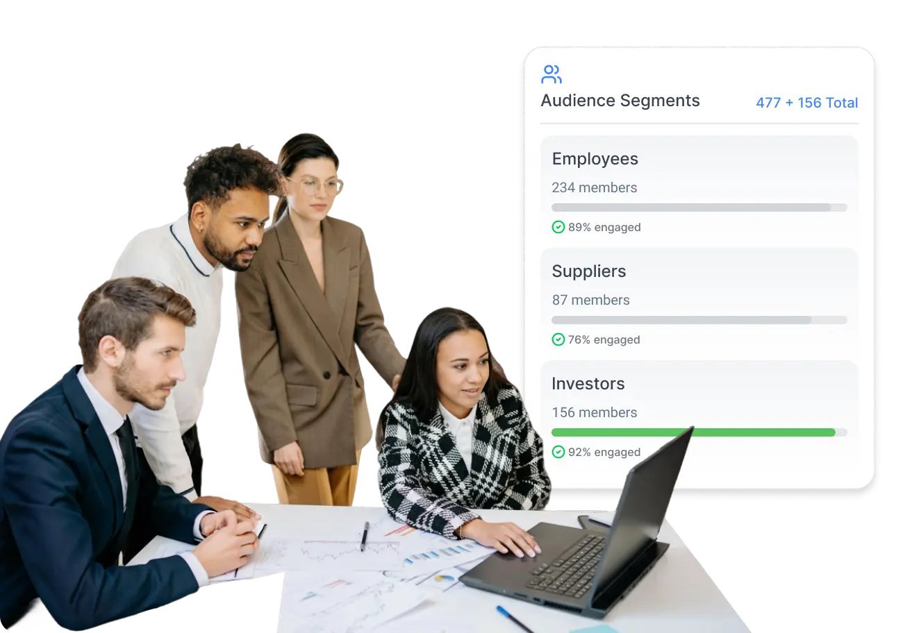 Use interactive feedback tools and guided surveys to involve stakeholders. Divide up your audience, record insightful data, and display the results on safe dashboards.